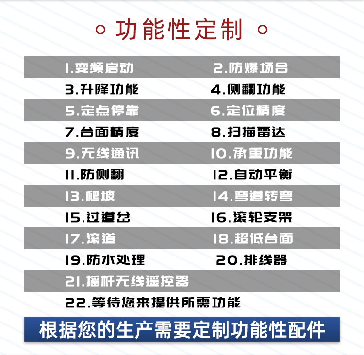 一對一量身設(shè)計規(guī)劃產(chǎn)品方案,用戶可在線咨詢搬運車的配置問題,也可以到廠面對面溝通,方便我們?yōu)槟峁└敱M的配置方案;